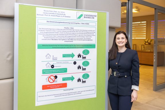 Nicole Mohr (*1999) ist Diplom-Juristin mit Schwerpunkt Steuerrecht. Ihr Studium der Rechtswissenschaften an der Universität Bayreuth schloss sie 2024 mit der Ersten Juristischen Prüfung mit vollbefriedigendem Ergebnis ab. Den universitären Schwerpunkt Unternehmen und Steuern schloss sie 2023 mit „gut“ ab. Praktische Erfahrung sammelte sie insbesondere seit 2021 bei Brose, wo sie in verschiedenen Funktionen im nationalen und internationalen Steuerbereich tätig war. Ergänzt wurde dies durch einen mehrmonatigen Auslandsaufenthalt bei Brose in den USA. Seit April 2025 ist sie wissenschaftliche Mitarbeiterin, Dozentin und Doktorandin im Gesellschafts- und Steuerrecht an der Universität Bayreuth.